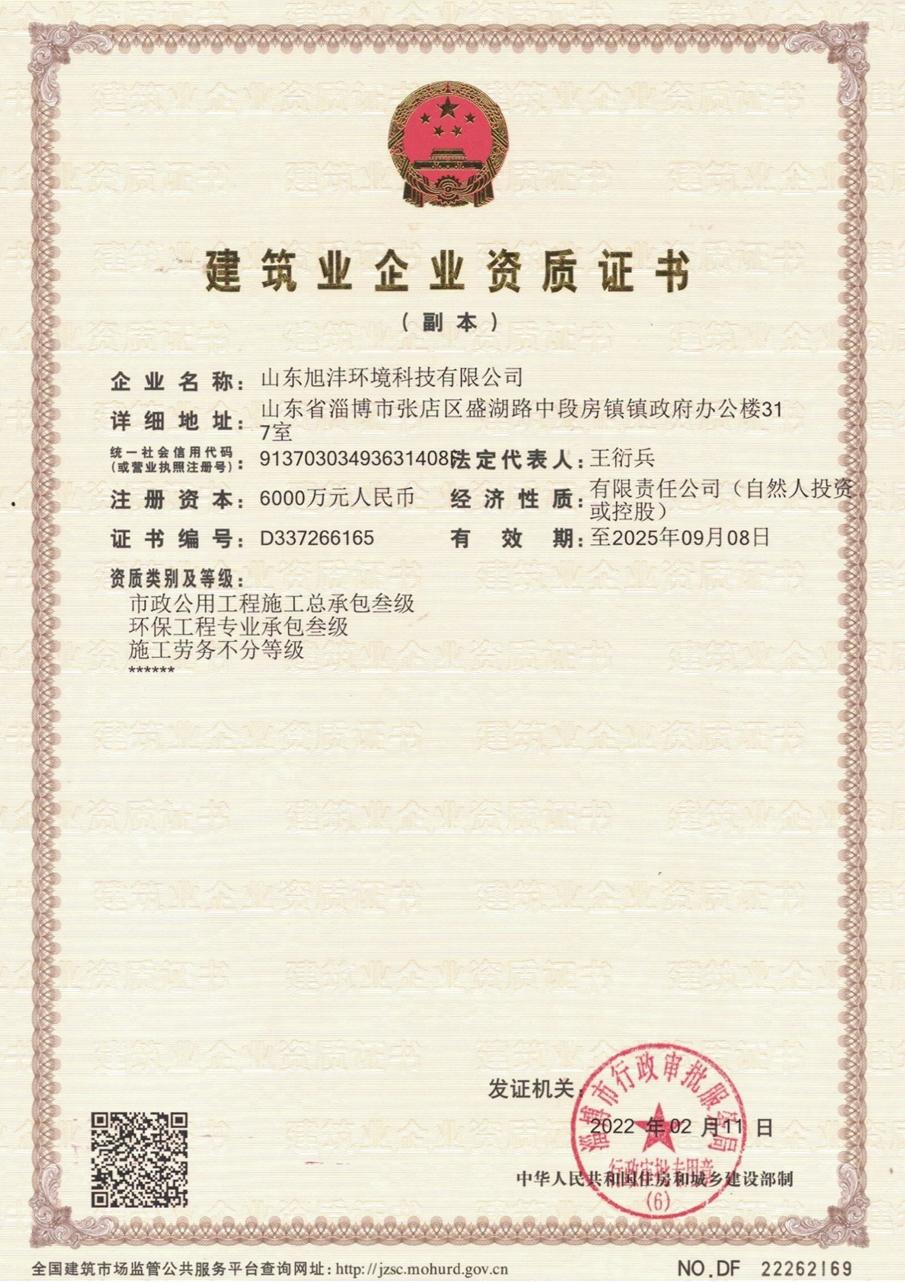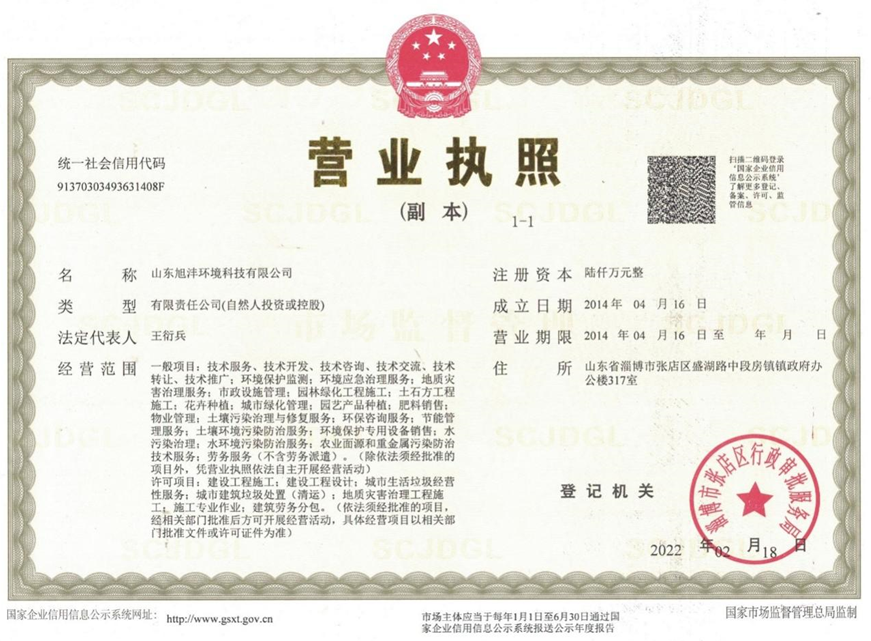 山东旭沣环境科技有限公司,成立于2014年,注册资本6000万元。拥有市政公用工程施工总承包叁级、环保工程专业承包叁级资质。主要经营范围:市政工程施工;市政设施管理;园林绿化工程施工;土石方工程施工;花卉种植;城市绿化管理;园艺产品种植;物业管理;土壤污染治理与修复服务;环保咨询服务;土壤环境污染防治服务;技术服务、技术开发、技术咨询、技术交流、技术转让、技术推广;环境保护检测;环境应急治理服务;地质灾害治理服务;城市生活垃圾经营性服务;城市建筑垃圾处置等。