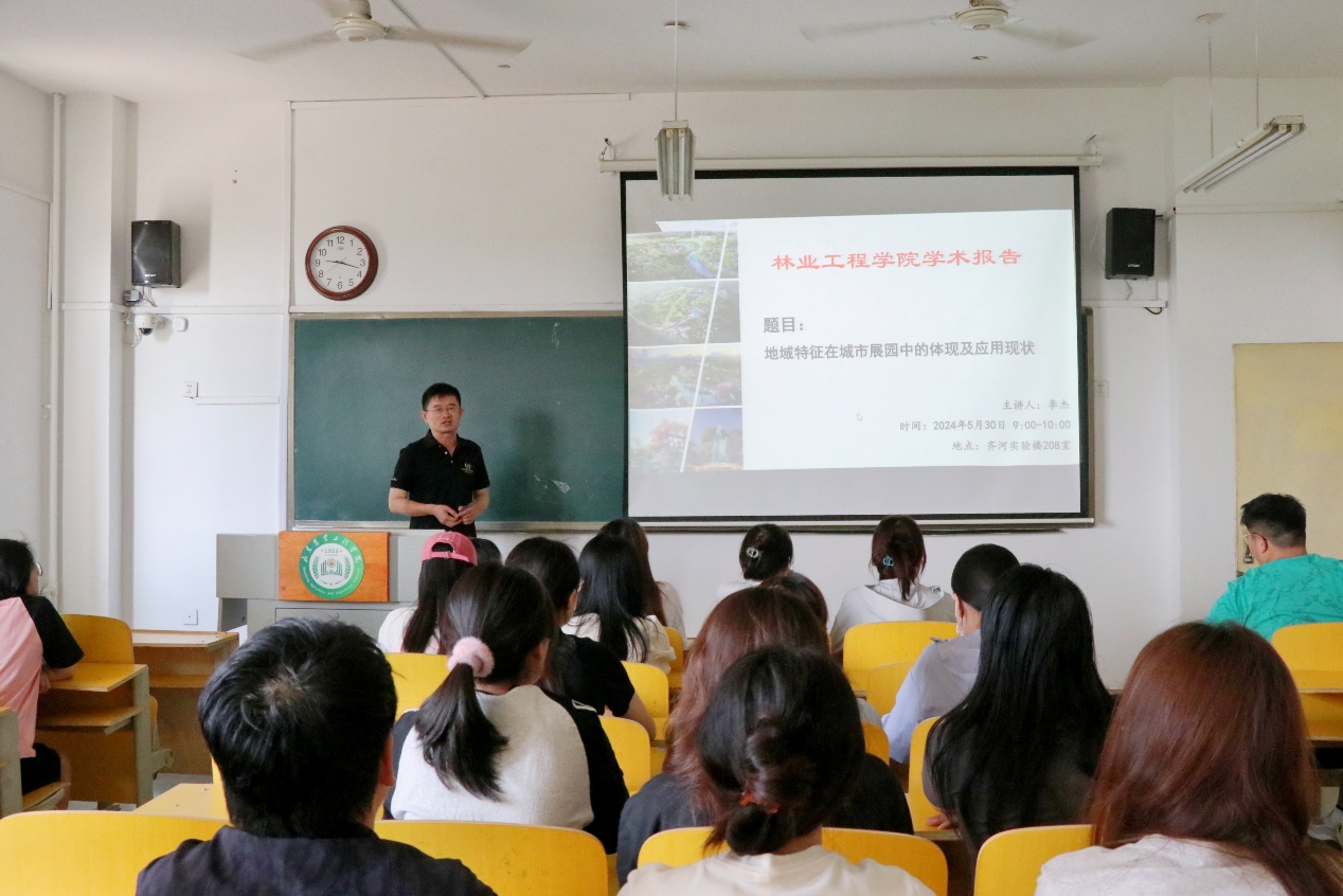为培养风景园林专业相关设计和技术人才,吸引广大学子了解城市展园地域性特征的应用,5 月 30 日,我院风景园林教研室主任李杰副教授在齐河校区实验楼208教师,举办题为“地域特征在城市展园中的体现及应用现状”的学术报告,吸引了近百名同学前来聆听。