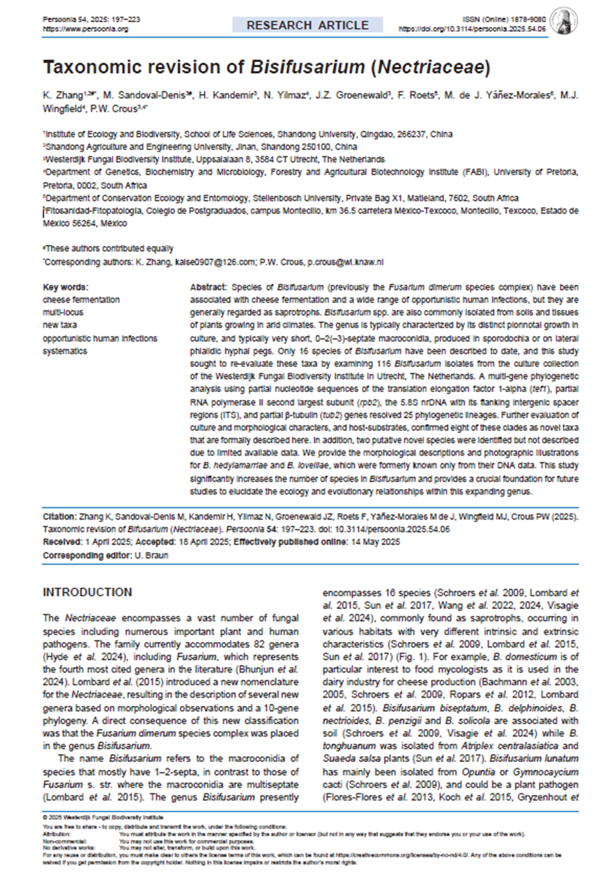 近日,437ccm必赢国际官网林业工程学院张凯教授在微生物学著名刊物《Persoonia》(中科院1区,IF=9.5)在线发表题为“Taxonomic revision of Bisifusarium (Nectriaceae)”的研究论文。