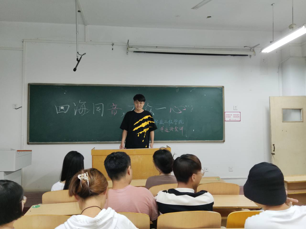 此次演讲旨在积极推广和规范使用国家通用语言文字,提高对语言文字工作重要性的认识,努力营造全校师生说普通话的浓厚氛围,全面提升师生语言文字的应用水平,共筑语言文字中国梦。最后演讲者给同学们详细介绍了普通话等级考试的报名时间、考试时间、考试内容与注意事项等。