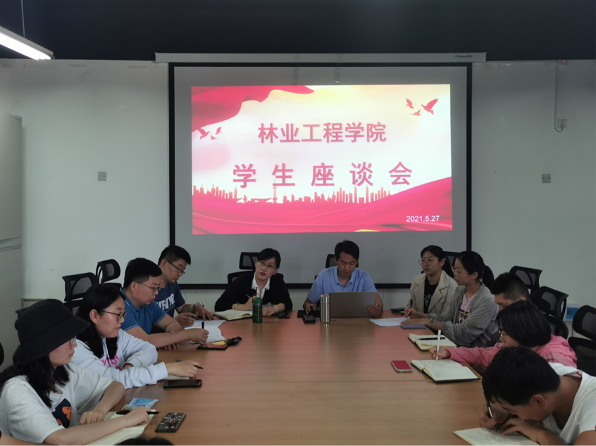 5月27日下午,我院座谈会在北二教305教室召开,会议认真听取学生代表对学院建设、宿舍文化建设、第二课堂活动开展建设、班级课堂学风建设、本科评估等方面的意见和建议。参加此次座谈的有林业工程学院院长束靖、副院长张忠峰、团总支书记黄珊珊老师、风景教研室主任李杰老师、森保教研室主任张凯老师、教务员牛雪莹老师以及两位辅导员与各班学生代表。