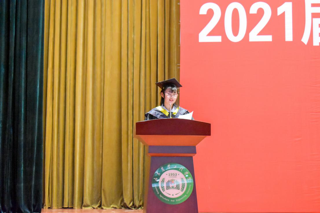2021届毕业生代表王思楠同学在发言中说,林业工程学院的点点滴滴已经在我们记忆中无法抹去,各位老师的教导更会铭记。并回忆了美好的大学生活,表达了对母校的深情眷恋和对师友的真挚感恩。