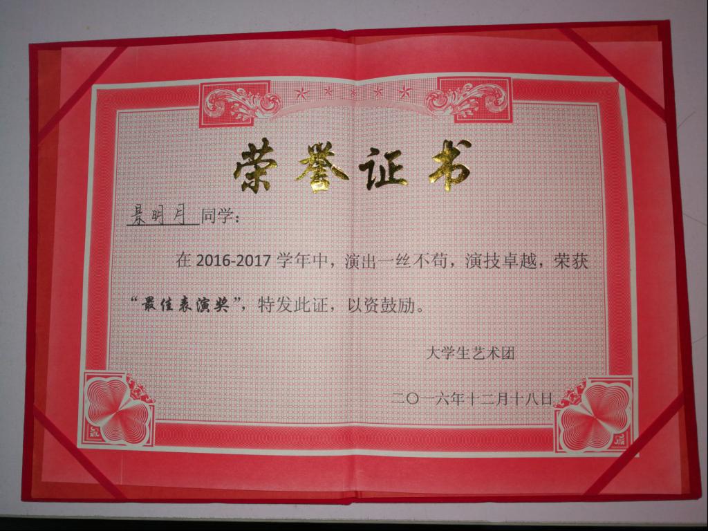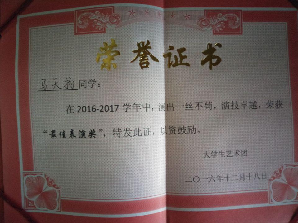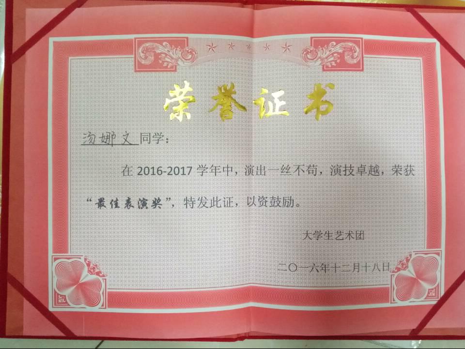 我院2016级风景园林管玉友、汤娜文、景明月、马天扬等4名同学在2016-2017学年大学生艺术团表演活动中,荣获“最佳表演奖”。