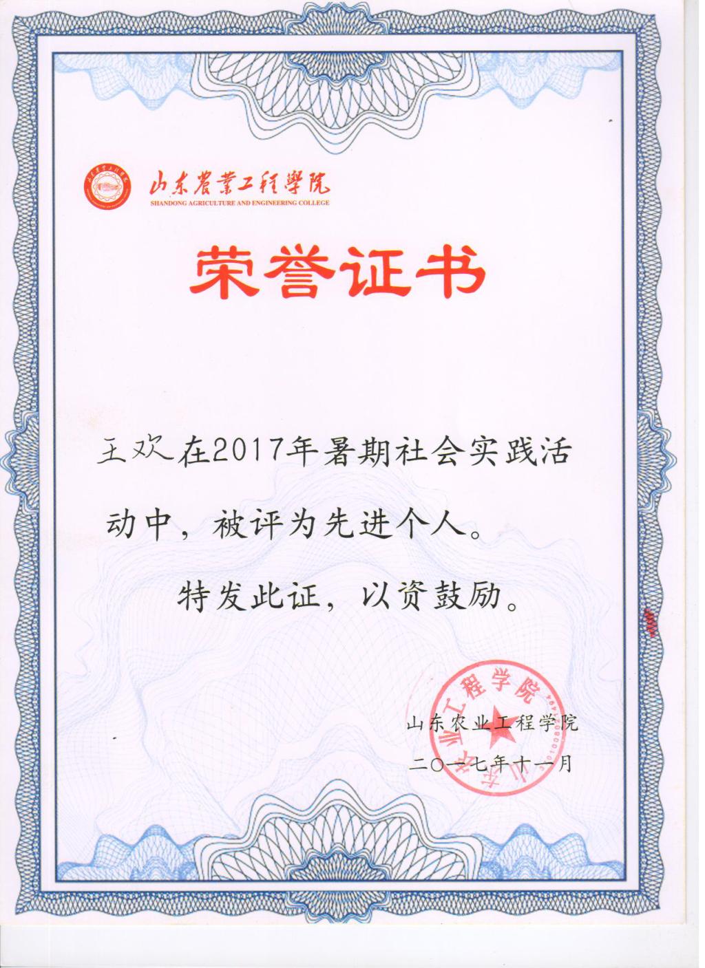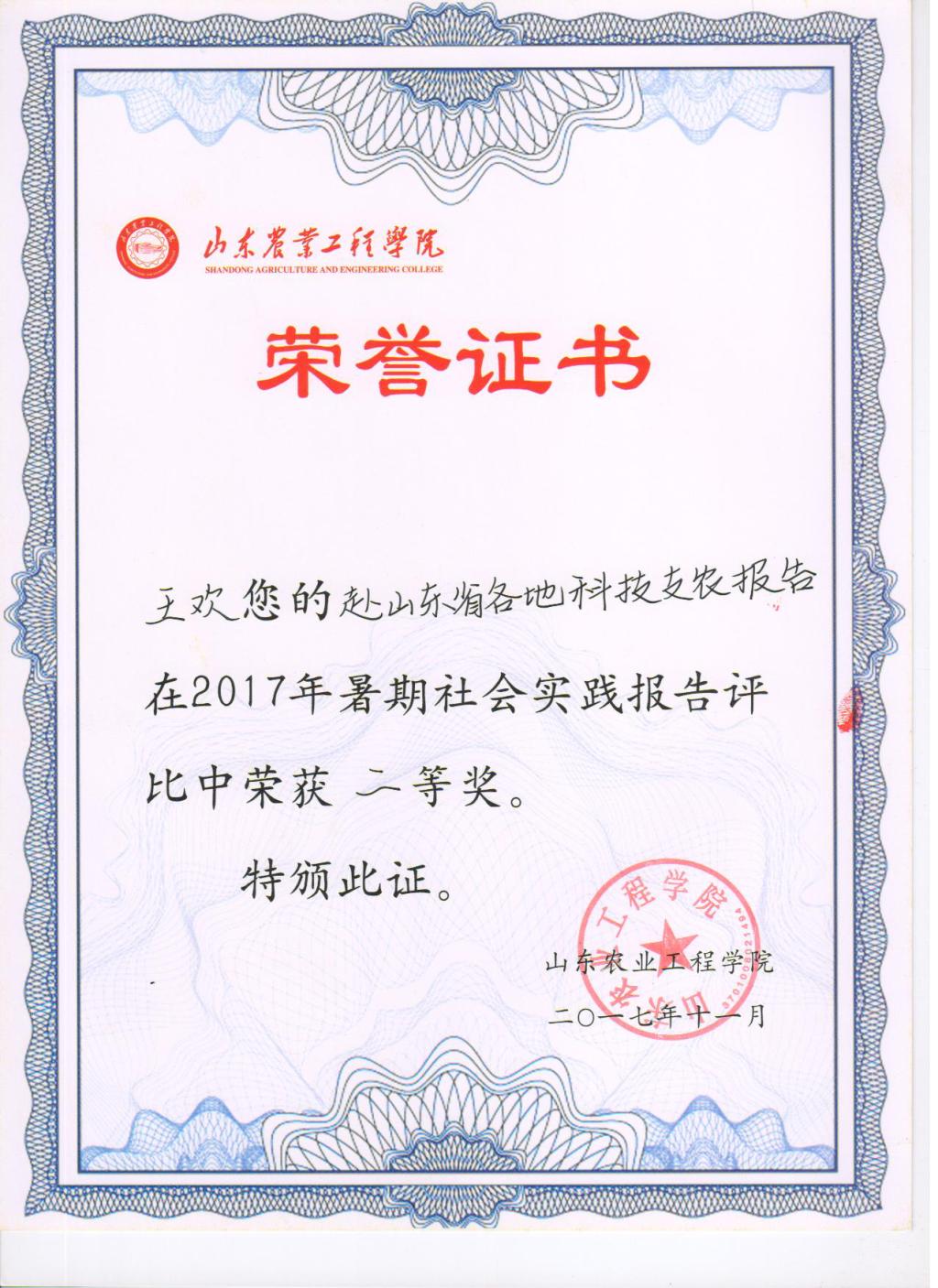 2016级园林技术(校企)韩庆国、2016级风景园林专业黄泓霖、2016级风景园林王欢,在2017年年暑期社会实践活动中,被评为先进个人。其中王欢的《赴山东省各地科技支农报告》在2017年暑期社会实践报告评比中获二等奖。