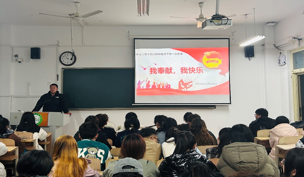 2023年12月28日,我院开展以“我奉献,我快乐”为主题的第一次入团积极分子培训团课。辅导员张振老师引导青年团员传递正能量,在奉献中实现自我价值。通过本次团课活动,青年团员们加深了对团队精神和志愿服务的理解,为今后更加积极地投身到团队活动和社会公益事业中奠定了坚实的基础。
