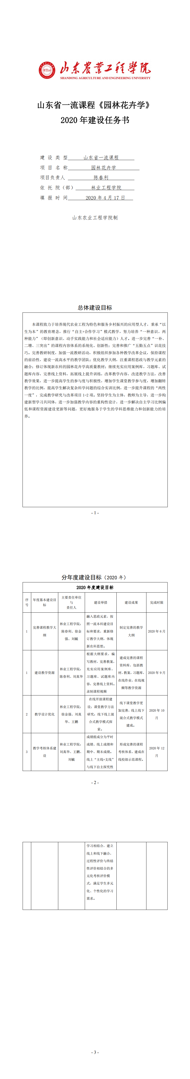 山东省一流课程《园林花卉学》 2020年建设任务书