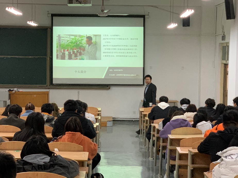 2021年3月15日下午,林业工程学院王信宏博士在北2教多1-1教室,以“药用植物的发展与研究思路”为题,为同学们做了一场精彩的学术报告,学院100余名师生现场聆听。