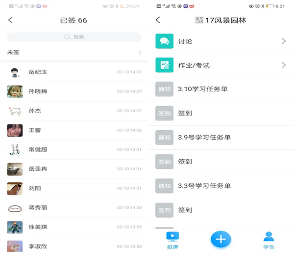 2.开始上课后,学生学习通上签到并在学习通上观看老师录播的视频及PPT等学习资料,并做好学习笔记。老师可以在学习通上查看学生的签到情况。