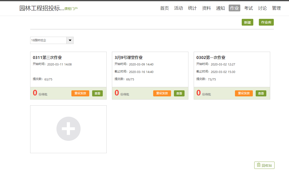 在课程主页点击作业,可新建作业,并在题库中选题,保存并设置好下发时间。