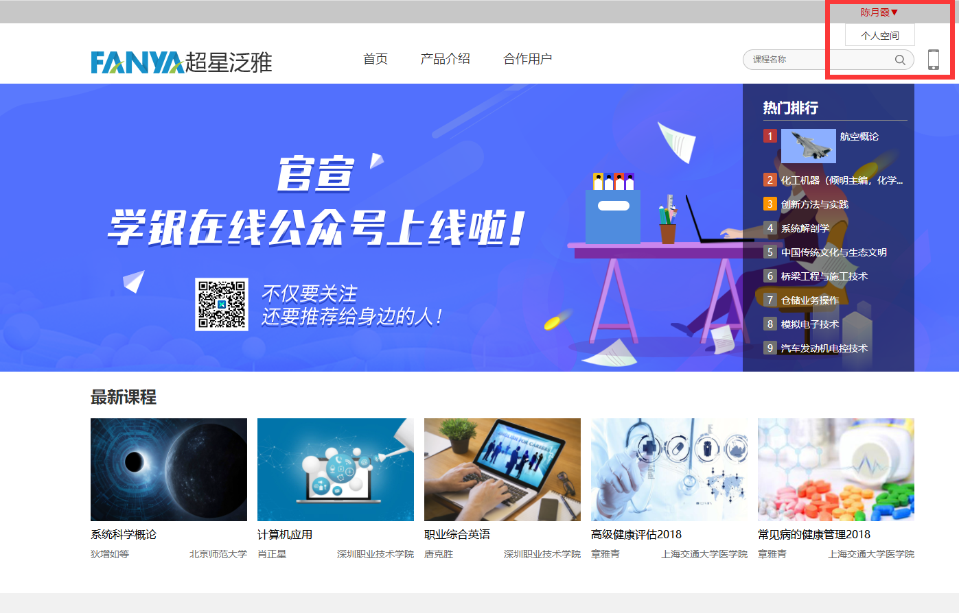 (1)在电脑端登录超星泛雅平台https://fanya.chaoxing.com/portal,进入个人空间,创建课程