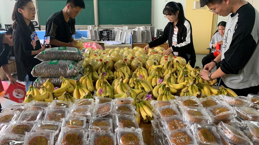我院为学生们准备了月饼等美味食品,布置教室举行活动,组织学生观看电影《我和我的祖国》,使得疫情期间留在学校的学生们感受到关爱与温暖。房书记、束院长、黄珊珊老师为学生们发放国庆中秋节日慰问品,学生们向老师送上了节日的祝福,进一步增进了老师与学生之间的感情,让学生们在学校同样感受到节日的快乐,感受到温暖与幸福。