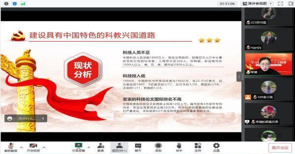 按照校党委部署要求和学院安排,为深入学习贯彻落实党的二十大精神,12月8日下午,学院院长束靖以《科教兴国人才兴邦》为题,通过腾讯会议形式为全体党员、教师上党课。学院党政班子成员、全体党员及教师参加会议。