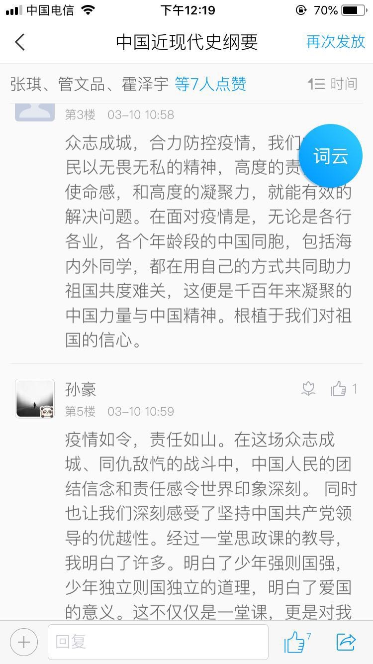 通过此次组织同学收看讨论此次疫情思政大课堂,同学们深化了对疫情相关知识的了解,受到了一次广泛的爱国主义精神熏陶,深刻地认识中国共产党领导和中国特色社会主义制度的显著优势。第一党支部的教师们也纷纷表示,一定在这关键的时刻为大学生解疑答惑、鼓劲加油,并引领大学生们积极投身到这场全民抗疫伟大斗争中去。