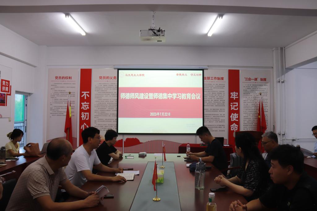 为深入学习贯彻习近平新时代中国特色社会主义思想,进一步加强学院师德师风建设,7月22日上午,我院召开师德师风建设暨师德集中学习教育会议。学院党总支书记、院长周安忠主持会议,全体教职工参会。