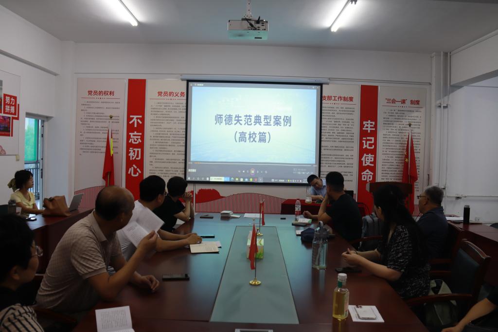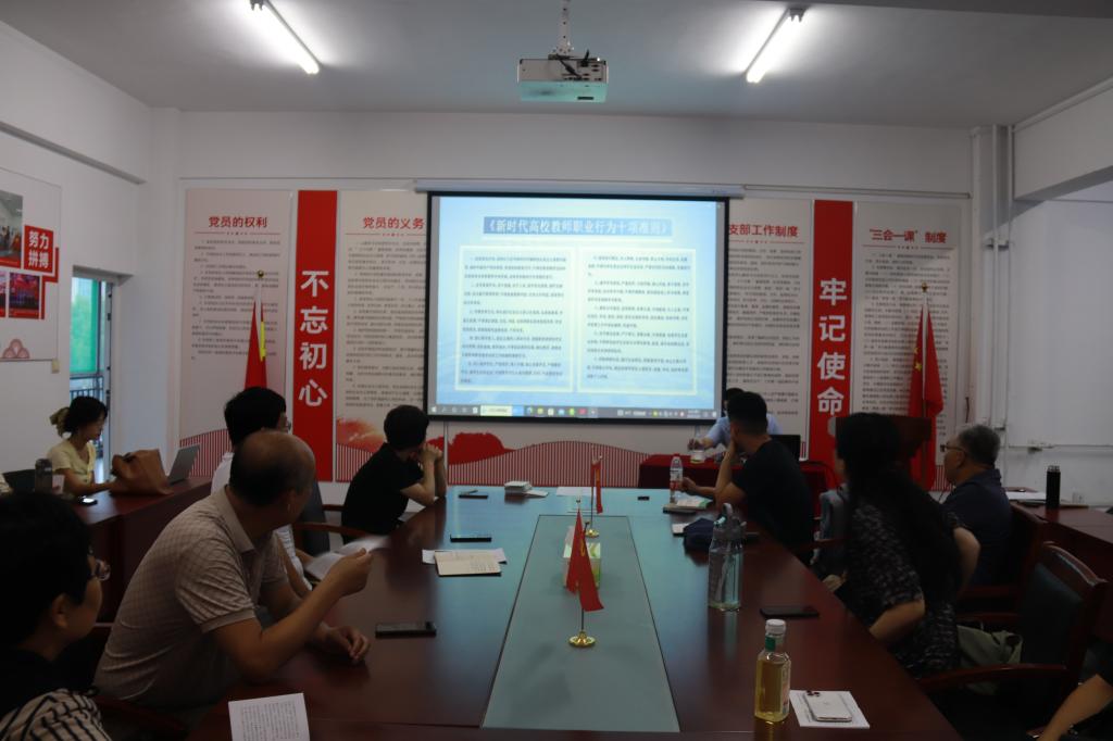 会上,周安忠向全体教职工传达了学校有关师德师风建设工作要求并对学院师德集中学习各项工作安排进行说明。全体教职工集体观看了《师德失范典型案例》警示教育片,共同学习了《新时代高校教师职业行为十项准则》,并领取了《教育部公开曝光的违反教师职业行为十项标准典型案例卡》。