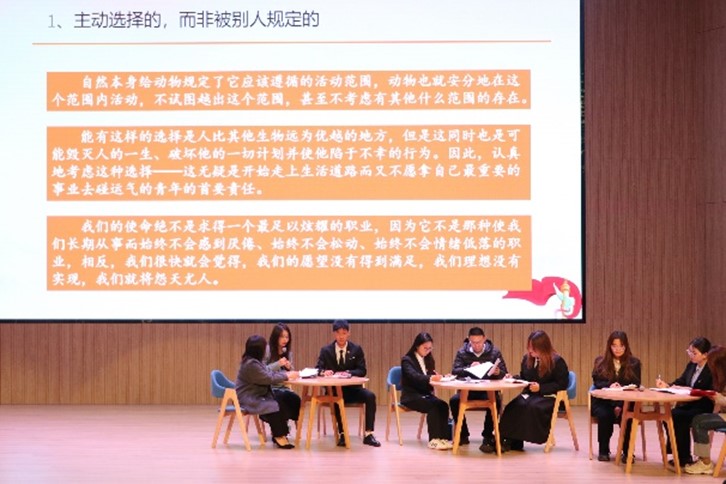 辅导员代表曾雅轩结合个人择业就业经历,从必赢学子择业和就业过程中面临的现实问题出发,向学员们讲述了马克思主义思想在职业选择中的具体体现。最后,团委副书记董小靖进行总结发言,并宣布本次活动圆满结束。