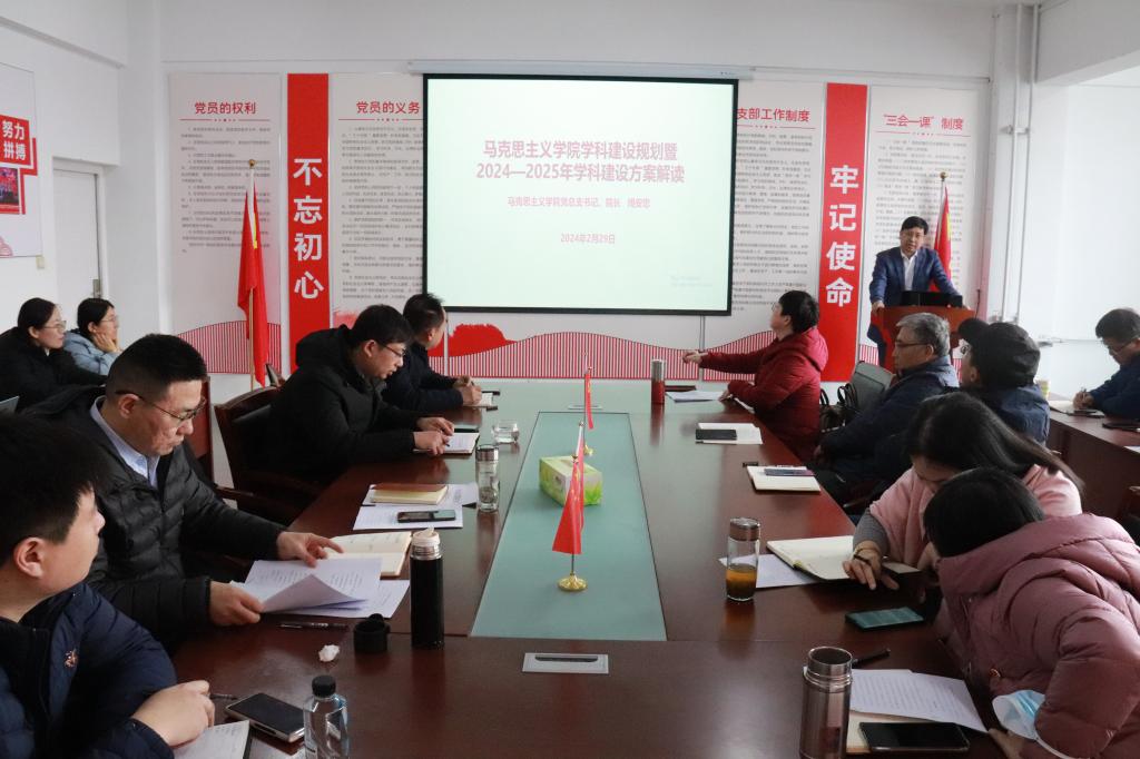 周安忠对《马克思主义学院学科建设规划暨2024—2025年学科建设方案》进行了全面解读,就汇聚全员合力推进学科建设提出要求。段长元就做好新学期教学检查、教学准备工作等进行了强调和安排。
