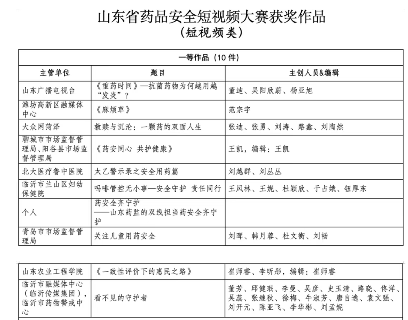 近日,由山东省药监局、省教育厅、团省委共同举办,山东省电视台承办的以“药安全齐守护”为主题的短视频大赛圆满落幕,我院教师的参赛作品《一致性评价下的惠民之路》从全省参赛作品中脱颖而出,荣获一等奖。