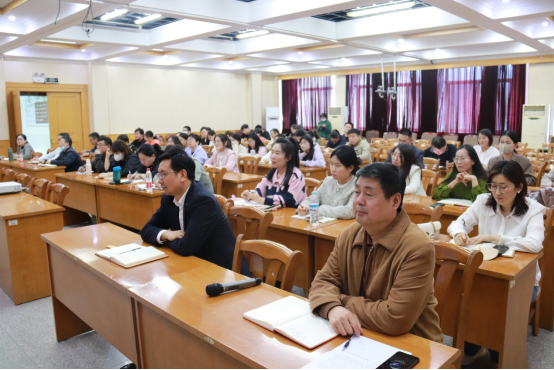 周向军教授以“关于新时代思政课教师成长发展的几个问题”为题,围绕新时代发展对教师新需求这一现实问题,从认真学习把握实践习近平总书记关于办好思政课重要论述、不断研读马克思主义经典文献切实提高马克思主义水平、正确认识和处理思政课教学中的一系列重要关系、带着问题意识持之以恒重视并开展科学研究、自觉加强对马克思主义理论学科的融会与贯通等五个方面进行具体论述和拓展延伸,劝勉教师们一定要不断成长进步,不要辜负了好时代。互动环节,教师们纷纷表示受益匪浅,并同周教授展开交流讨论。