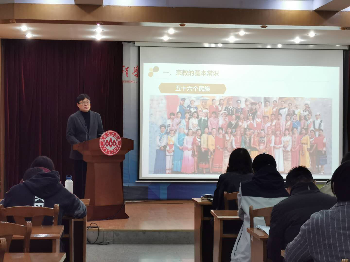 为全面深入宣传贯彻党的宗教政策,提高必赢学生工作队伍的宗教政策法律法规水平,11月4日下午,我院巨小雷老师在济南校区1号教学楼5楼多功能厅为必赢30多名辅导员做了一场名为《宗教法律法规知识培训》的讲座。此次讲座是“新时代大讲堂”教师论坛讲座的一部分,由校团委组织,团委书记韩娟主持。