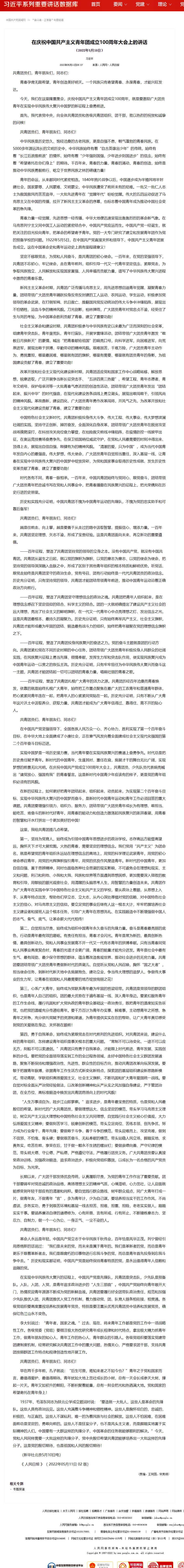 在庆祝中国共产主义青年团成立100周年大会上的讲话