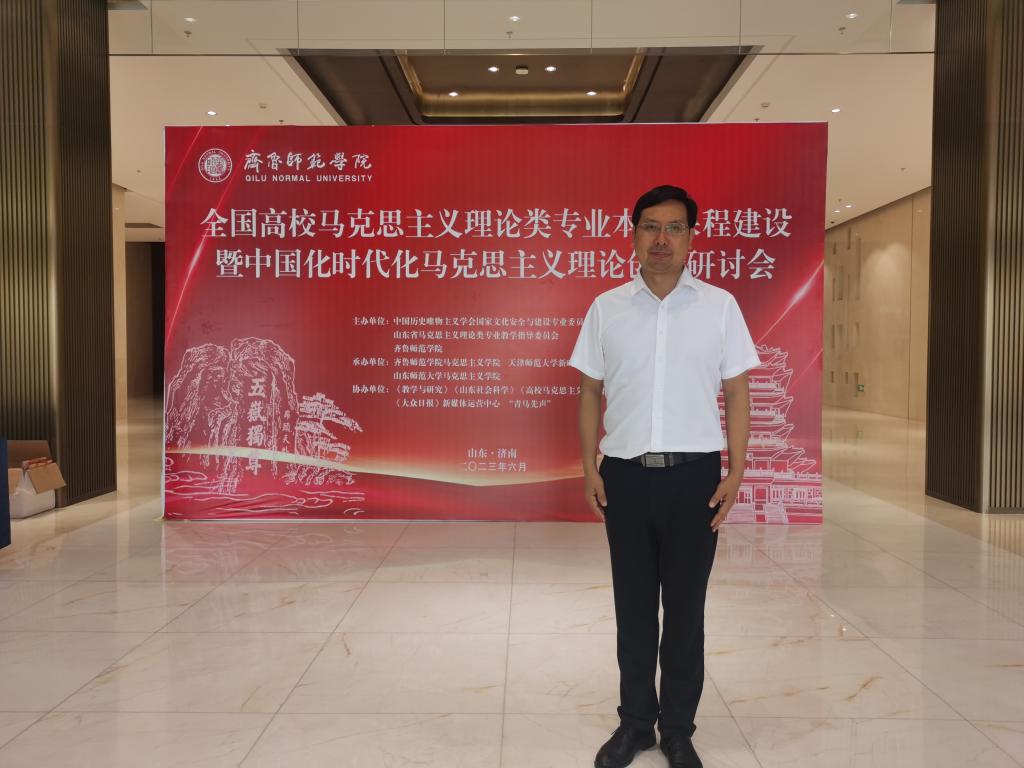 6月17日,由中国历史唯物主义学会国家文化安全与建设专业委员会、山东省马克思主义理论类专业教学指导委员会(以下简称“教指委”)、齐鲁师范学院主办的“全国高校马克思主义理论类专业本科课程建设暨中国化时代化马克思主义理论创新研讨会”在山东济南召开。我院党总支书记、院长周安忠应邀参加会议,并同与会专家学者就思政课建设有关问题展开深入交流。