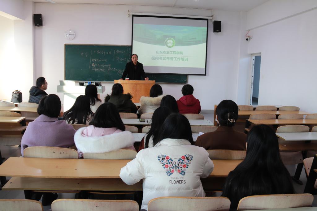12月30日下午,我院在西教学楼503教室召开校内考试考务工作培训会,全体监考教师参与本次会议,会议由院党总支书记兼院长赵斌主持。