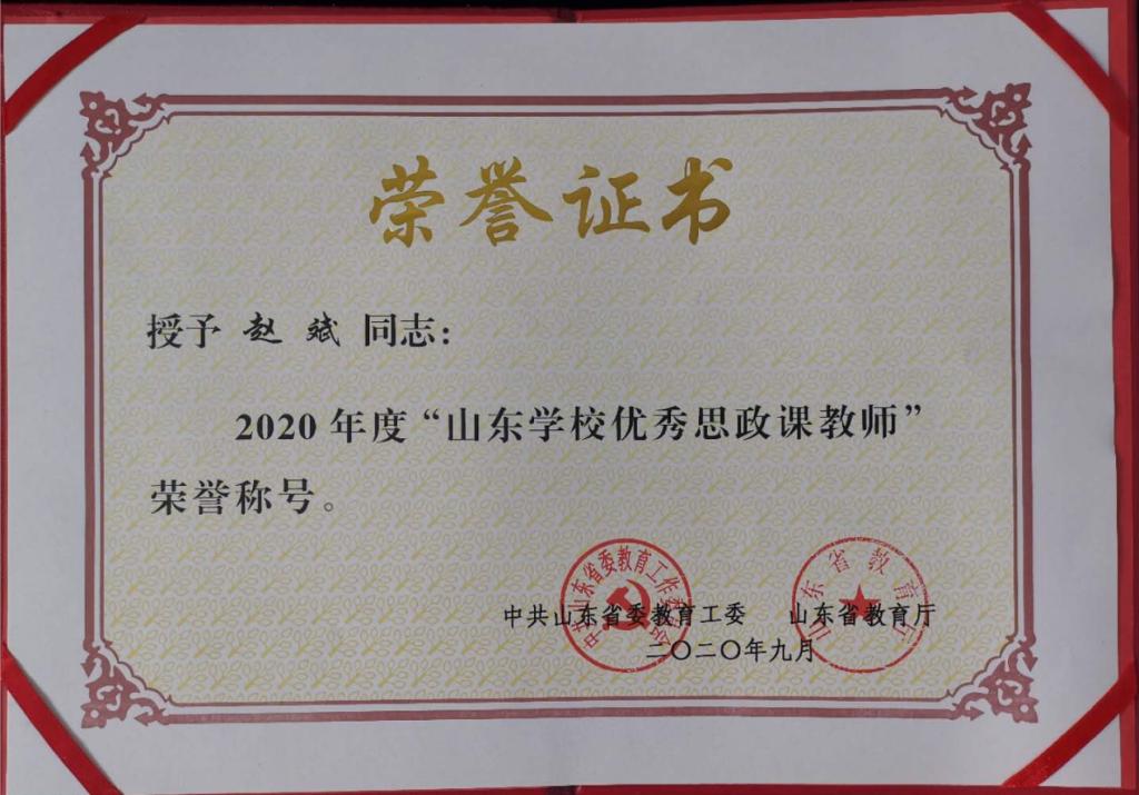 我院赵斌教授荣膺2020年度“山东学校优秀思政课教师”