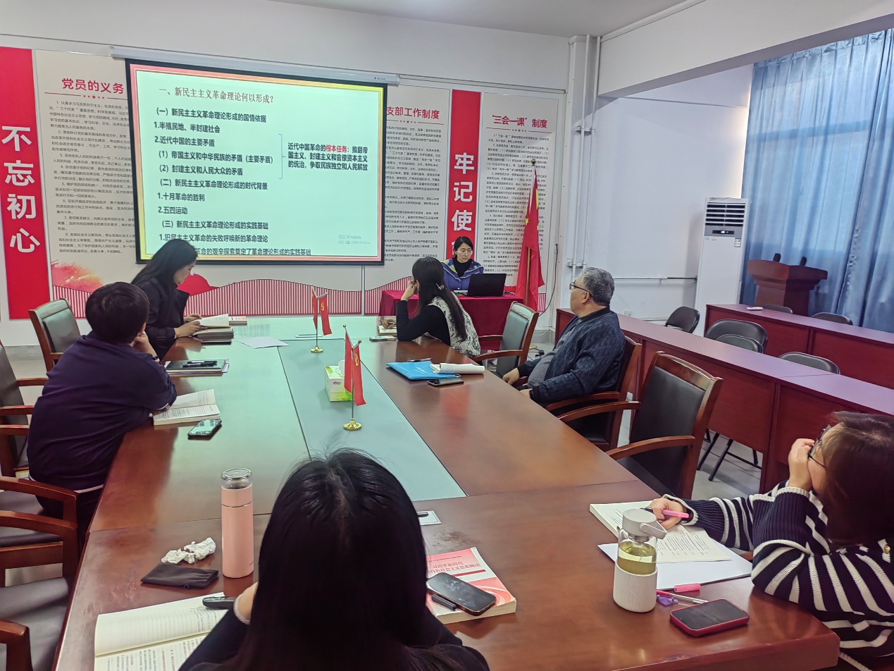 按照本学期初制定的备课计划及要求,此次活动由胡铮和张旭两位老师汇报,分别就专题三《新民主主义革命理论》和专题四《社会主义改造理论》从专题重点、难点、疑点和考点进行了阐述。