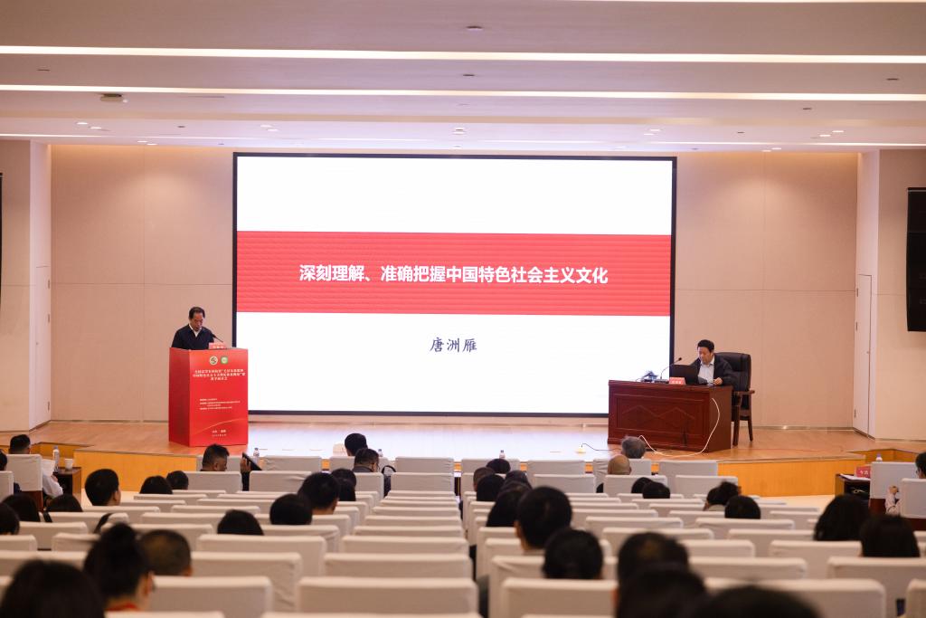 在主旨报告环节,唐洲雁以《深入理解、准确把握中国特色社会主义文化》为题,深入浅出地阐述了中国特色社会主义文化的哲理、道理、原理,为思政课教学提供了鲜活的案例和生动的教材。