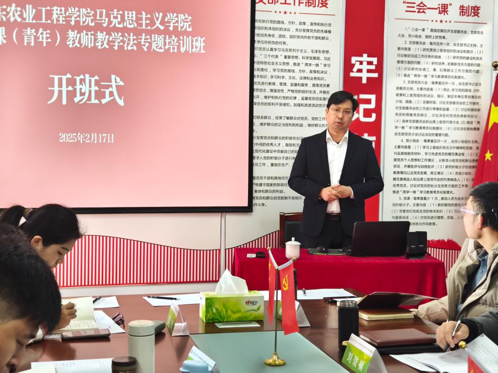 2月17日至21日,马克思主义学院2025年思政课(青年)教师教学法专题培训班在济南校区成功举办,学院教师共47人参加,党总支书记、院长周安忠主持开班仪式并作动员讲话,从培训缘由、目的、内容、纪律等四个方面提出了明确要求。
