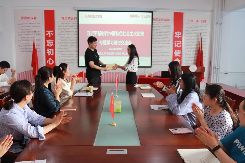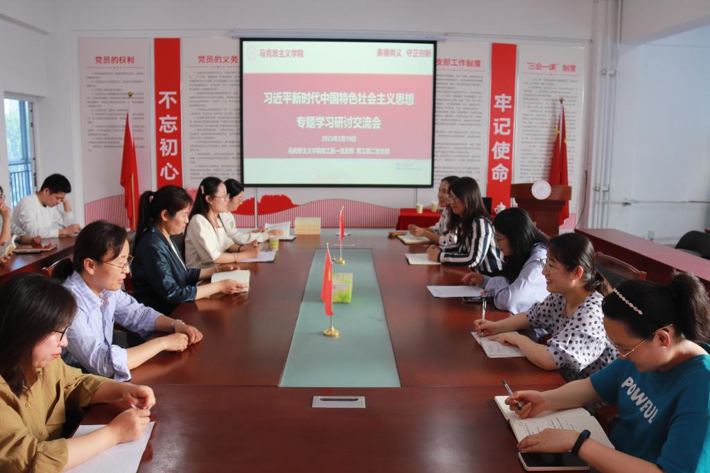 为继续深入开展学习贯彻习近平新时代中国特色社会主义思想主题教育,全面学习领会习近平新时代中国特色社会主义思想,5月18日下午,马克思主义学院教工第一党支部、第二党支部在2教309会议室组织主题教育第二次专题学习研讨交流活动。