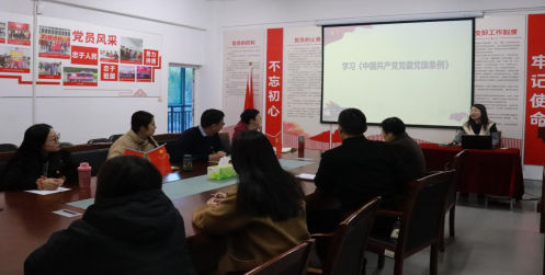 首先,高杨同志领学《中国共产党党徽党旗条例》,生动细致地从该条例制定的重大意义、主要内容以及如何规范地使用党徽党旗三方面进行解读。学习完毕后,二支部全体党员面向鲜红的党旗,一起紧握右拳,庄严肃立,重温了入党誓词。