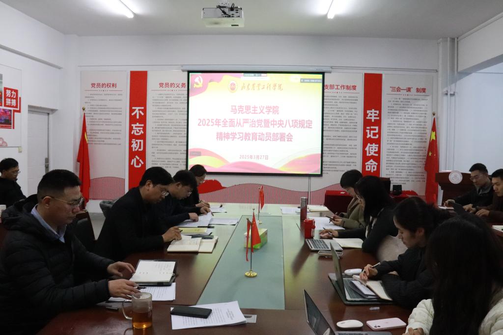 3月27日下午,马克思主义学院召开2025年全面从严治党暨深入贯彻中央八项规定精神学习教育动员部署会,会议由马克思主义学院党总支书记、院长周安忠主持,学院领导班子及全体教职工参加会议。