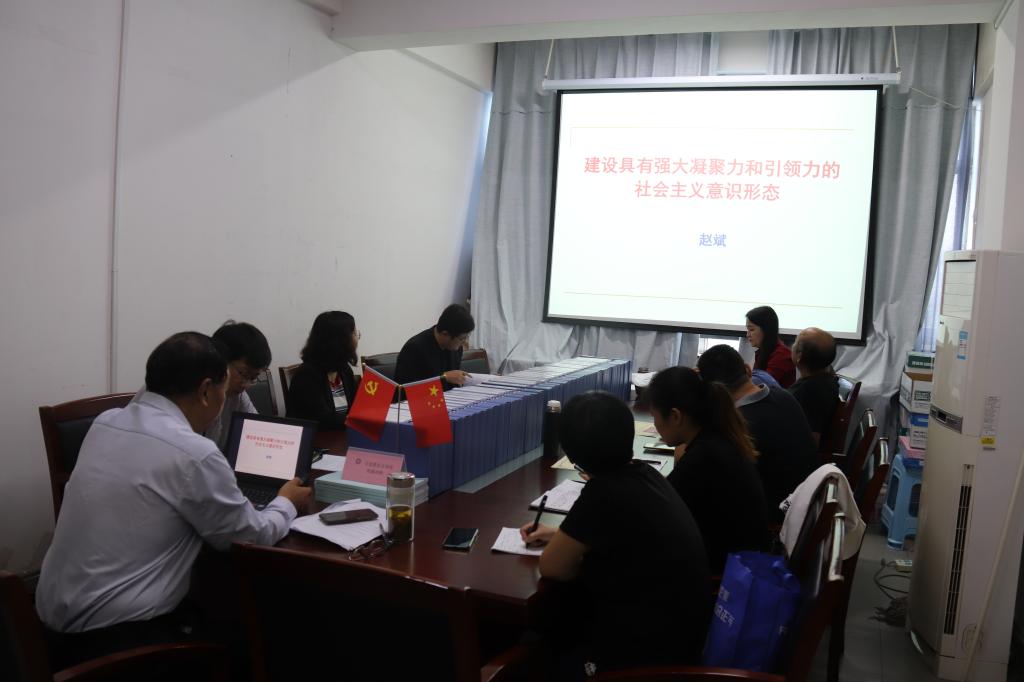 9月25日上午,我院党总支书记赵斌同志在马院406室以《建设具有强大凝聚力和引领力的社会主义意识形态》为题为我院思政课教师上了一堂精彩的党课。