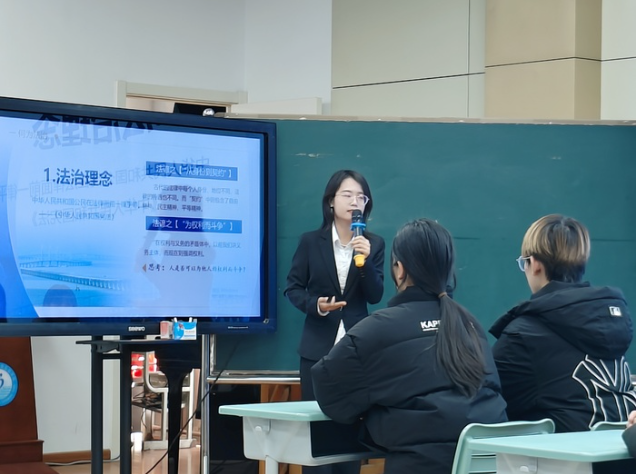 历城区祥泰实验学校老师陶书文和历城双语实验学校陶三娥老师分别以中小学生为授课对象,通过小组展示、师生问答等形式进行教学展示,切实提高了学生们的参与感,激发了学生学习法律常识的兴趣。我院教师刘晓晨以《普法强基法润成长》为题,从法治理念、法治制度、法治方法、法治文化四个方面入手,结合热点案件剖析,向大学生们上了一堂生动的法治教育课,强化了大学生对法治理念的理解,提升大学生法治思维能力和法治素养,获得了全场老师的一致好评。