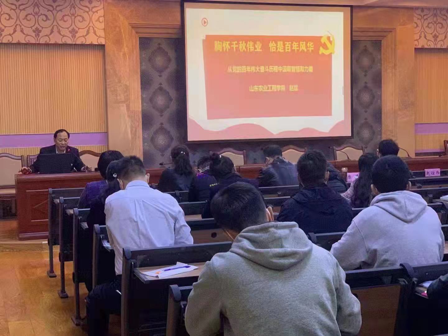 近日,我院党总支书记兼院长赵斌教授应邀为济南市市中区七贤街道办事处党员干部作了一场党史学习教育专题报告。赵斌从深入学习领会习近平总书记关于党的历史的重要论述、充分认识开展党史学习教育的重大意义等四个方面系统阐述了从1921年到2021年,中国共产党所创造的百年辉煌成就。赵斌指出:从建党的开天辟地,到新中国成立的改天换地,到改革开放的翻天覆地,再到党的十八大以来党和国家事业取得历史性成就、发生历史性变革,中国共产党坚守初心使命,团结带领人民创造了“当惊世界殊”的发展成就,书写了人类发展史上的伟大传奇,社会主义中国以更加雄伟的身姿屹立于世界东方,中华民族迎来了从站起来、富起来到强起来的伟大飞跃。实现中华民族伟大复兴进入了不可逆转的历史进程。实践充分证明:中国共产党是中国人民和中华民族的主心骨,只有中国共产党才能领导中国,只有社会主义才能救中国,只有改革开放才能发展中国、发展社会主义、发展马克思主义,只有中国特色社会主义道路才能引领中国走向繁荣富强、实现中华民族伟大复兴。