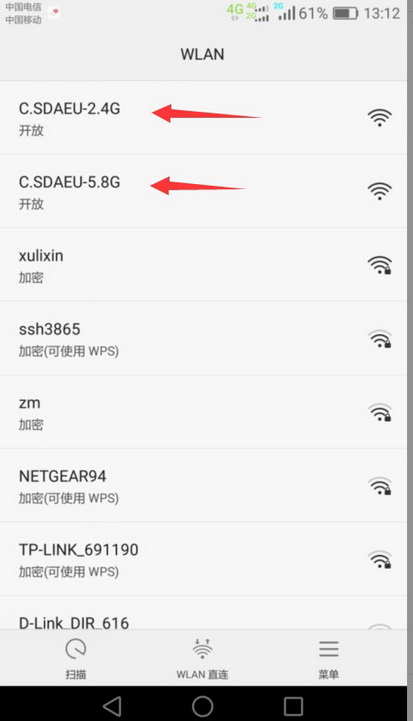 如果手机或笔记本网卡同时支持2.4G和5.8G频段,您将能看到如下界面: