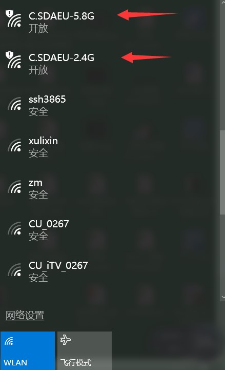 新的校园网络采用了目前最为先进的802.11ac、wave2技术,在速度,容量和质量上进行了全面的升级。可搜到的信号如下: