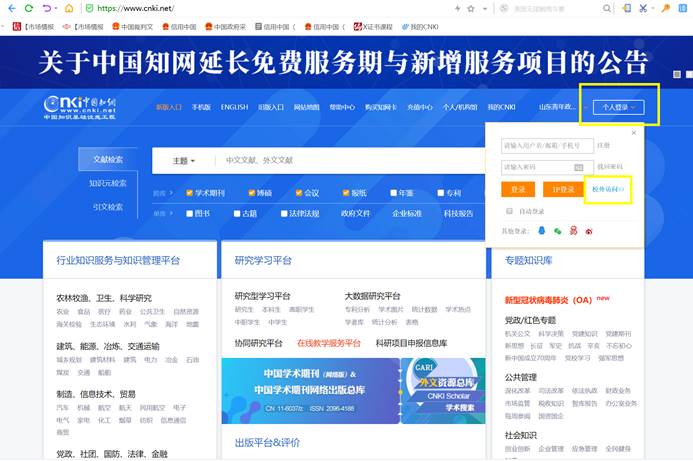 然后即可直接进入知网首页顺利访问CNKI数据库资源了!