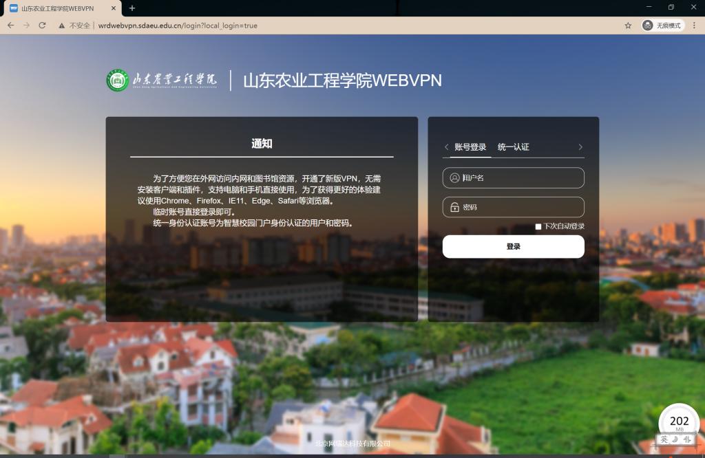 使用链接http://wrdwebvpn.sdaeu.edu.cn/login?local_login=true访问