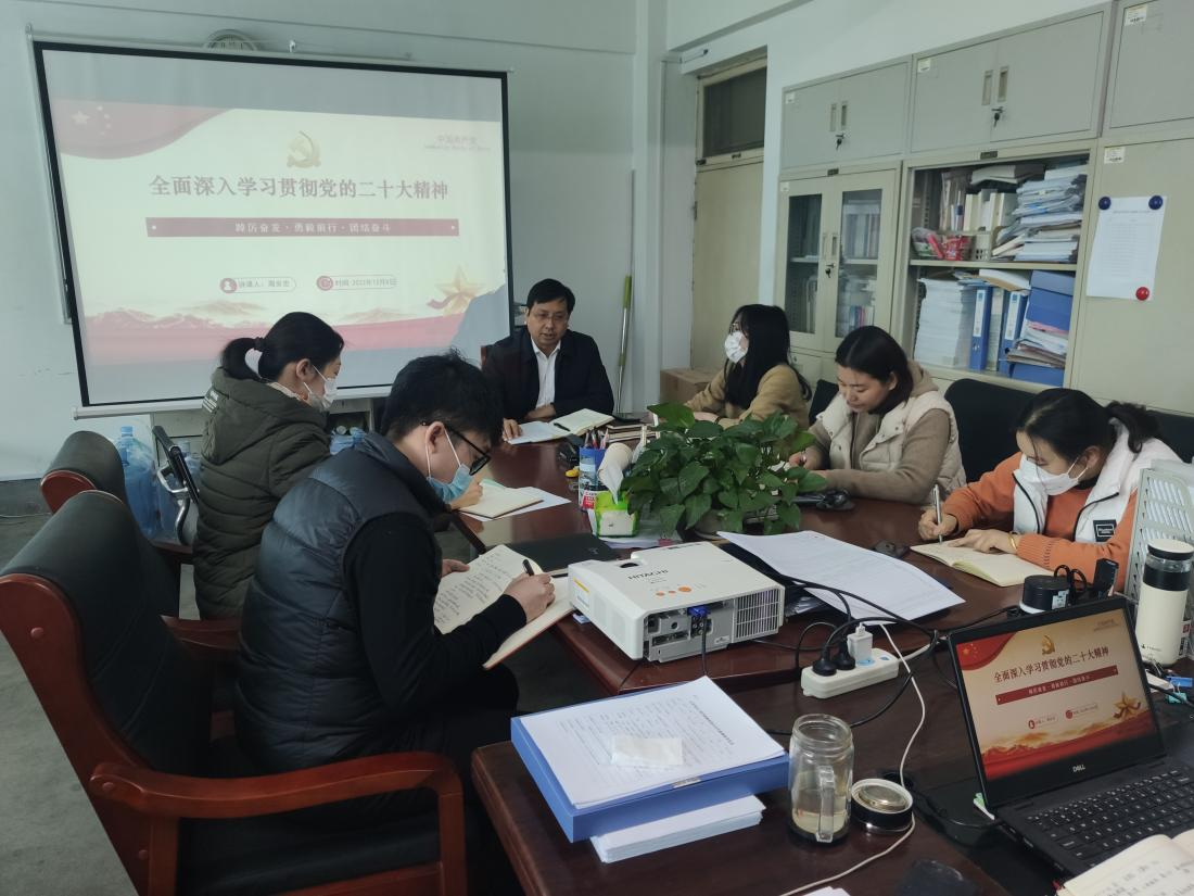 12月9日,人事处党支部在414办公室召开支部党员大会,校学习宣传贯彻党的二十大精神宣讲团成员、人事处党支部书记周安忠同志在会上宣讲党的二十大精神,人事处全体党员参加会议。