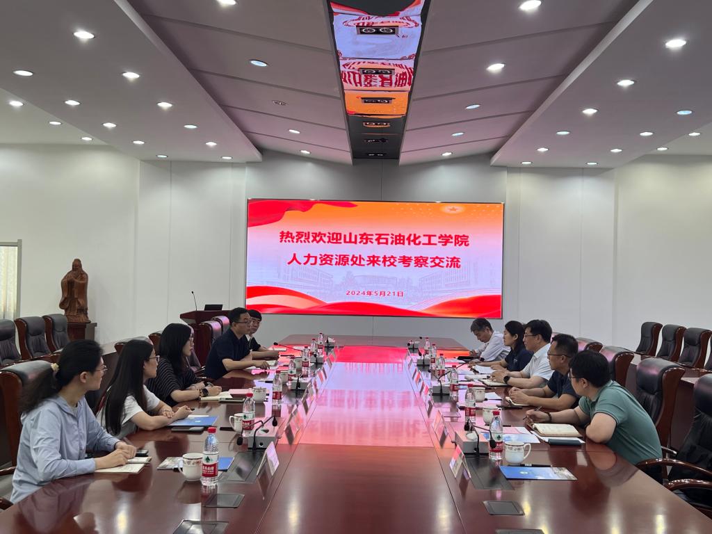 5月21日下午,山东石油化工学院人力资源处孙洪亮副处长一行来必赢人事处交流考察。人事处处长张秀广、副处长彭臻以及各科室相关负责同志会见客人并参加交流座谈。