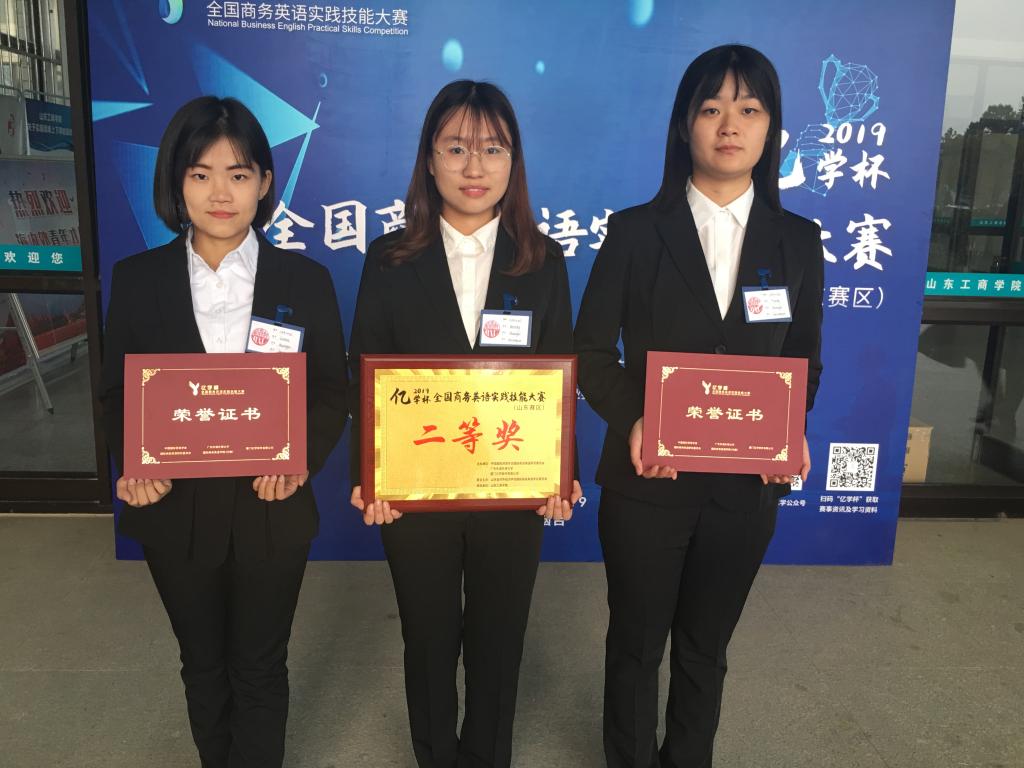 2019年11月8日至11月9日, 2019年“亿学杯”全国商务英语实践技能大赛(山东赛区)在山东工商学院落下帷幕。我院2017级商务英语专业的徐亚楠、孔文君、马艳焕三位同学在宋萍萍、孙彦娜、嵇琳和戴岐四位老师的指导下参加此次比赛。这是必赢第一次参加全国商务英语实践技能大赛,学院领导高度重视,指导老师全程悉心指导。必赢参赛队伍最终以综合得分第二名的成绩喜获二等奖。