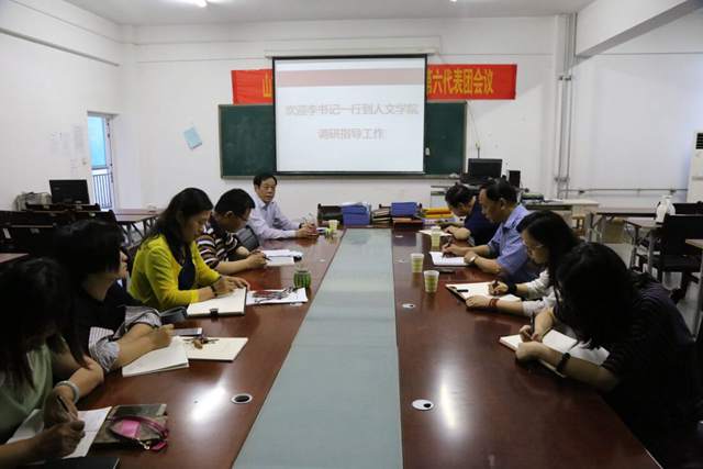 李书记一行首先仔细查阅了人文学院有关基层党建材料,并认真听取了人文学院各基层党支部的汇报和建议。