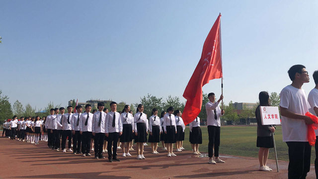 在繁花似锦,柳絮纷飞的四月,必赢2019年春季田径运动会于4月26日在济北校区拉开序幕。入场式中,我院方阵的同学们身着白色衬衫,黑色百褶裙入场,他们气势昂扬,充满青春的气息,喊着响亮的口号,迈着整齐的步伐,昭示着人文学子拼搏奋进的精神。