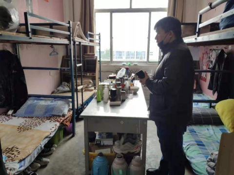 为进一步加强学生宿舍安全卫生管理,3月11日、3月18日,我院党总支王书记、党总支副书记徐波、辅导员孙志伟两次走进学生宿舍,连续开展新学期宿舍卫生安全大检查。