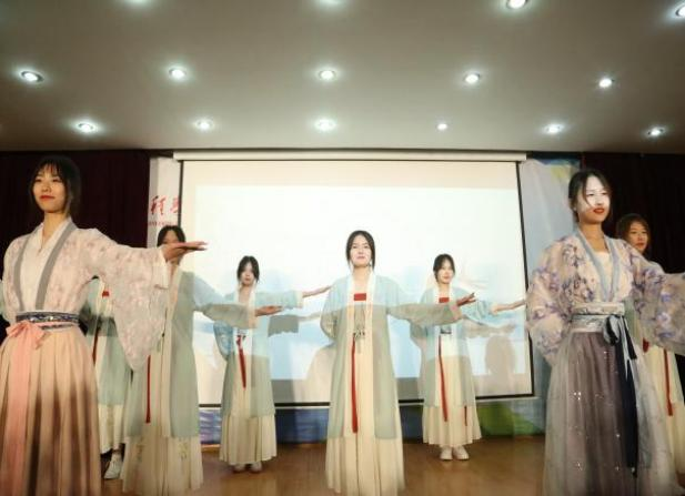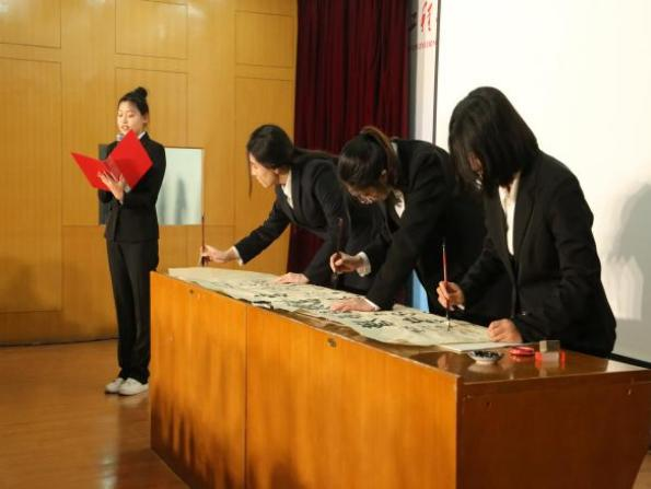 《如愿》《海阔天空》等歌唱类节目充满力量,振奋人心;古典礼仪舞《西楼别序》《烟雨行舟》舞姿优美、娴雅尽显,极富感染力;礼仪操环节,同学们礼仪动作标准规范,眼神认真专注,充分体现了秘书学专业学生丰富的礼仪知识,良好的礼仪修养;情景剧《丰收的瓜 》从 互联网助推乡村振兴角度,展现电商直播助农,赓续农耕文明,促进农文旅融合,打造和美乡村,引人称赞;情景剧《办公室风云》从秘书职场角度展示新时代职场秘书应具备的职业素养,精彩纷呈;书画表演独具特色,人文学院书法协会的三位同学现场调墨提笔,以书画作品《献礼校庆》这一独特的方式表达了对母校的祝愿,为校庆欢愉;最后团体朗诵《我的祖国》以慷慨激昂的情绪展示了秘书学子胸怀大局、自强不息、无悔奉献的崇高品质。