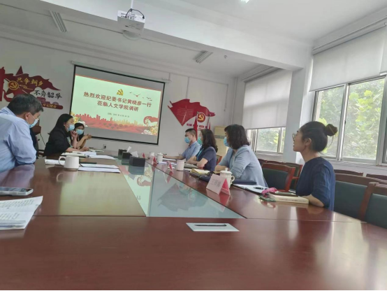 近日,学校党委委员、纪委书记、监察专员黄晓彦和校纪委副书记张凌等领导一行莅临我院开展调研并指导工作。人文学院党总支书记王纪、院长高千秋、党总支副书记徐波以及相关教师代表和学生代表参加了调研。调研座谈会由人文学院党总支书记主持。