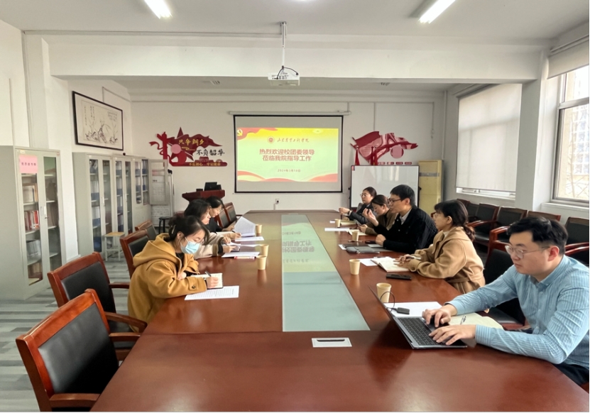 为进一步深化校院两级团组织合作,探索团学工作新思路,促进共同发展,3月18日下午,校团委书记谷晓川、校团委副书记董小靖等一行5人莅临我院开展调研、指导工作。学院党总支副书记戎芸婷、团总支书记潘保丽以及辅导员老师徐萌参加调研。